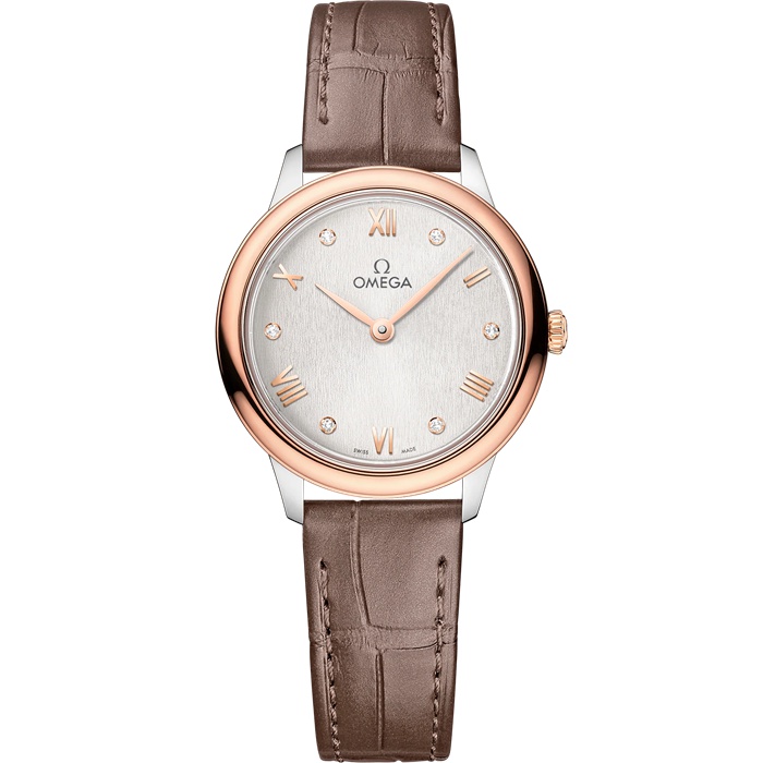 Omega De Ville Prestige 27,5 mm, stal – złoto Sedna™ na skórzanym pasku 434.23.28.60.52.001